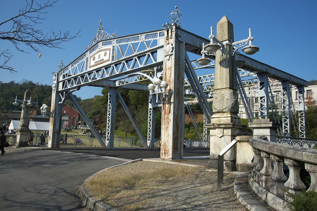 を背に展示されている。尾西線の蒸気機関車が谷を渡るところにある。雨の日も情緒があるが,天主堂では
