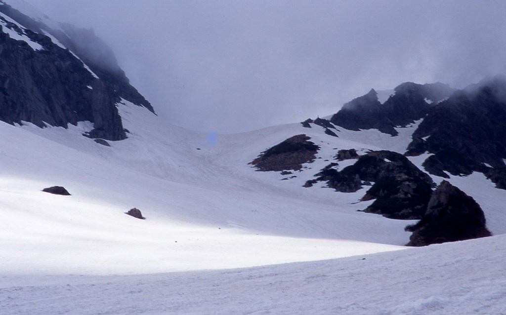 涸沢ヒュッテへは稜線を避けて, 大きく左手に曲がって進む。